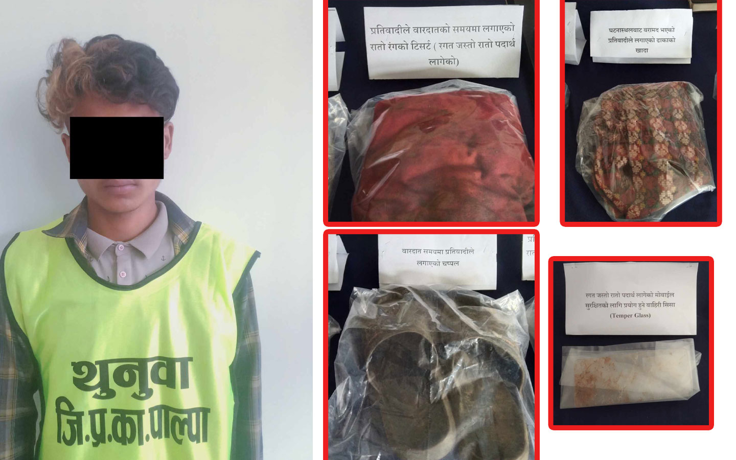 प्रहरीले निजको साथबाट हँसिया एक थान , निजले लगाएको कालो् लुगा जिन्स पाईन्ट , रातो टिसर्ट , रातो रंगको खादा , कालो रंगको चप्पल मृतकको मावाईल , रगत जस्तो देखिने रातो पदार्थ लागेको मोबाईलको टेम्पर ग्लास एक् थान बरामद गरेर सार्वाजानिक गरेको छ । पद्यमा स्थानीय शारादा मावि कक्षा १२ मा पढ्दै थिईन ।