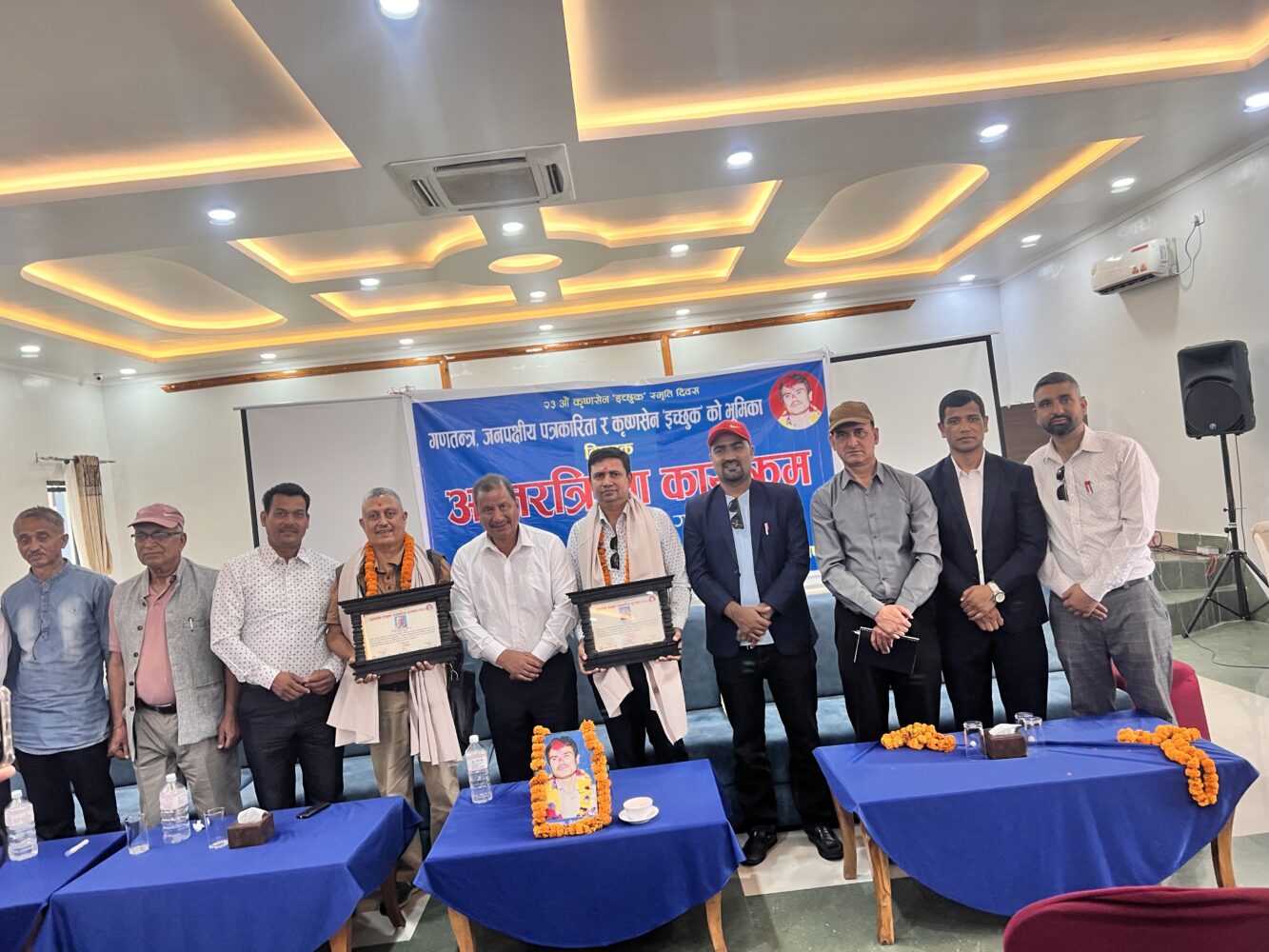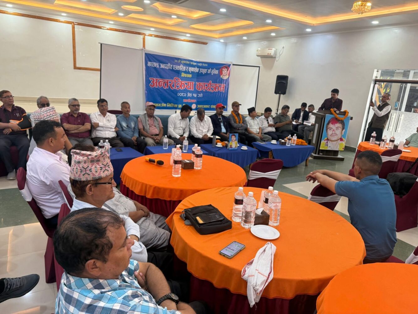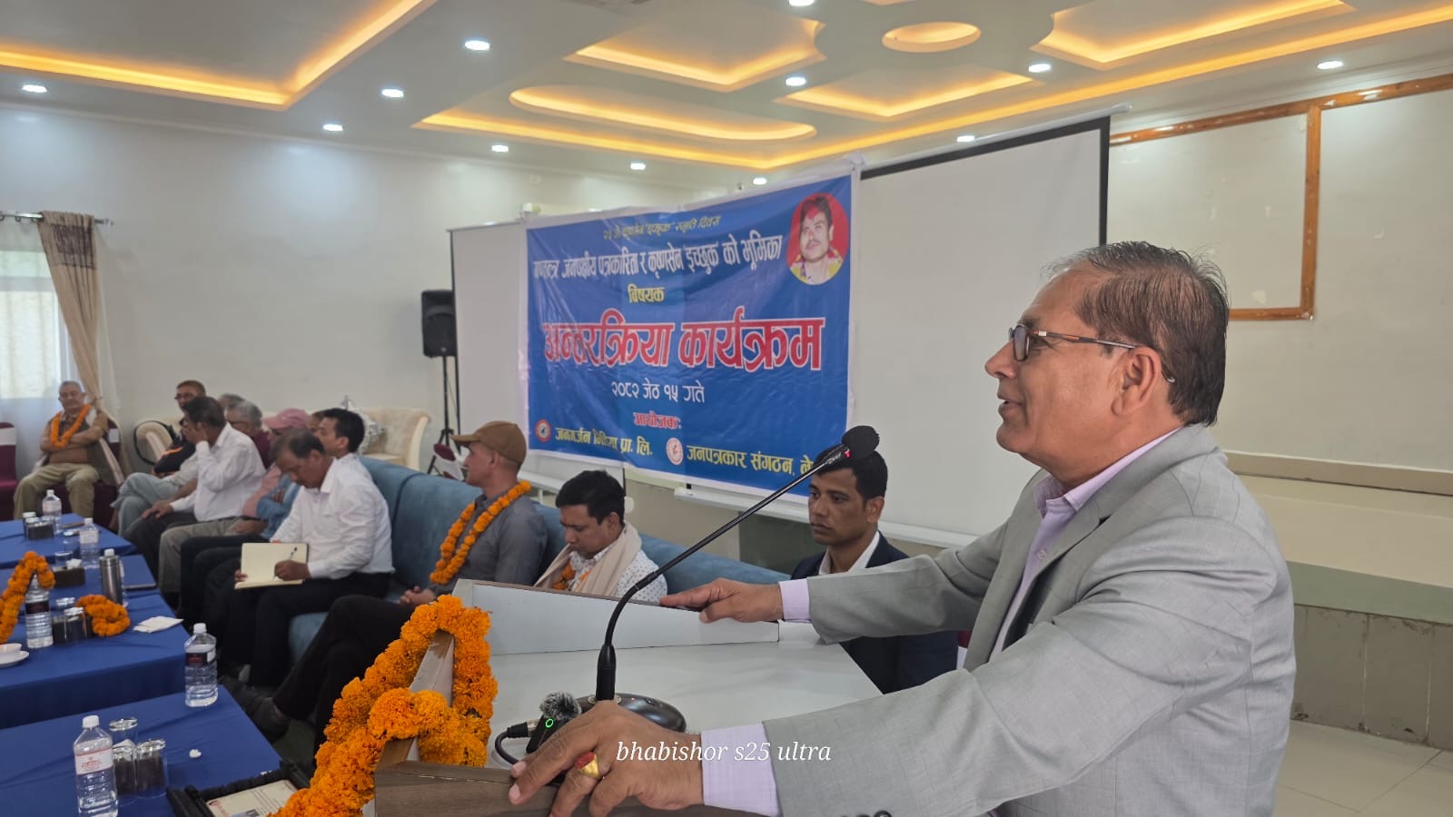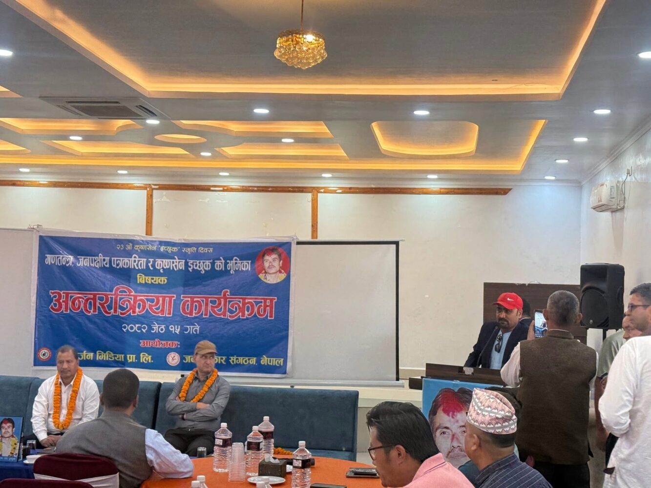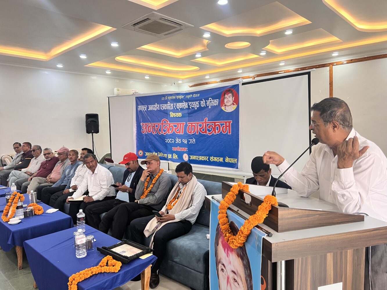 यस्तै कार्यक्रममा अध्यक्षता गर्नुभएका जनगर्जन मिडिया प्रालि का अध्यक्ष प्रकाश डुम्रेले गणतन्त्र मा जनपक्षीय पत्रकारीता सन्कट पर्न नहुने भन्दै गणतन्त्रमाथी धावा बोल्ने शक्तीहरुका बिरुद्द एकजुट भैइ आवाज उठाउनुपर्ने बताए ।
