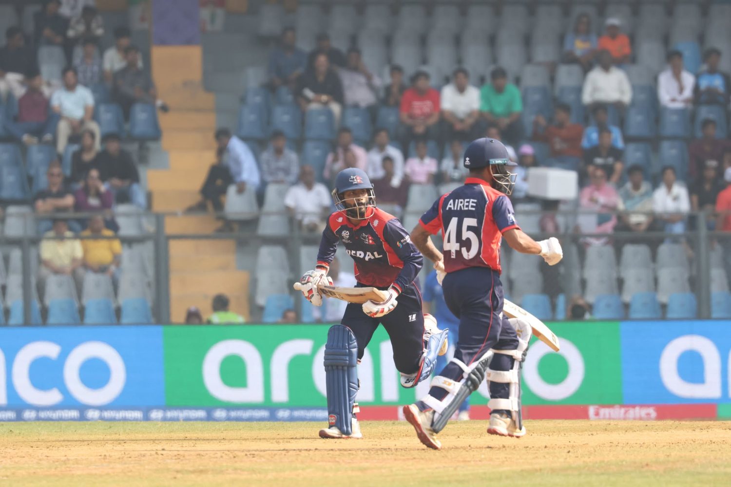 मुम्बईस्थित वानखेडे स्टेडियममा टस हारेर पहिले ब्याटिङ गरेको नेपालले १९।३ ओभरमा सबै विकेट गुमाएर १२३ रन बनायो। नेपालको लागि आरिफ शेखले सर्वाधिक २७ रन बनाए । रोहित पौडेलले २३ र आसिफ शेखले २० रन जोडे । बाँकी खेलाडीले २० रनको आँकडा समेत छुन सकेनन् ।